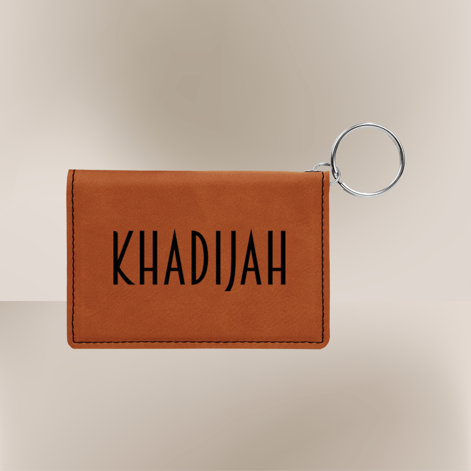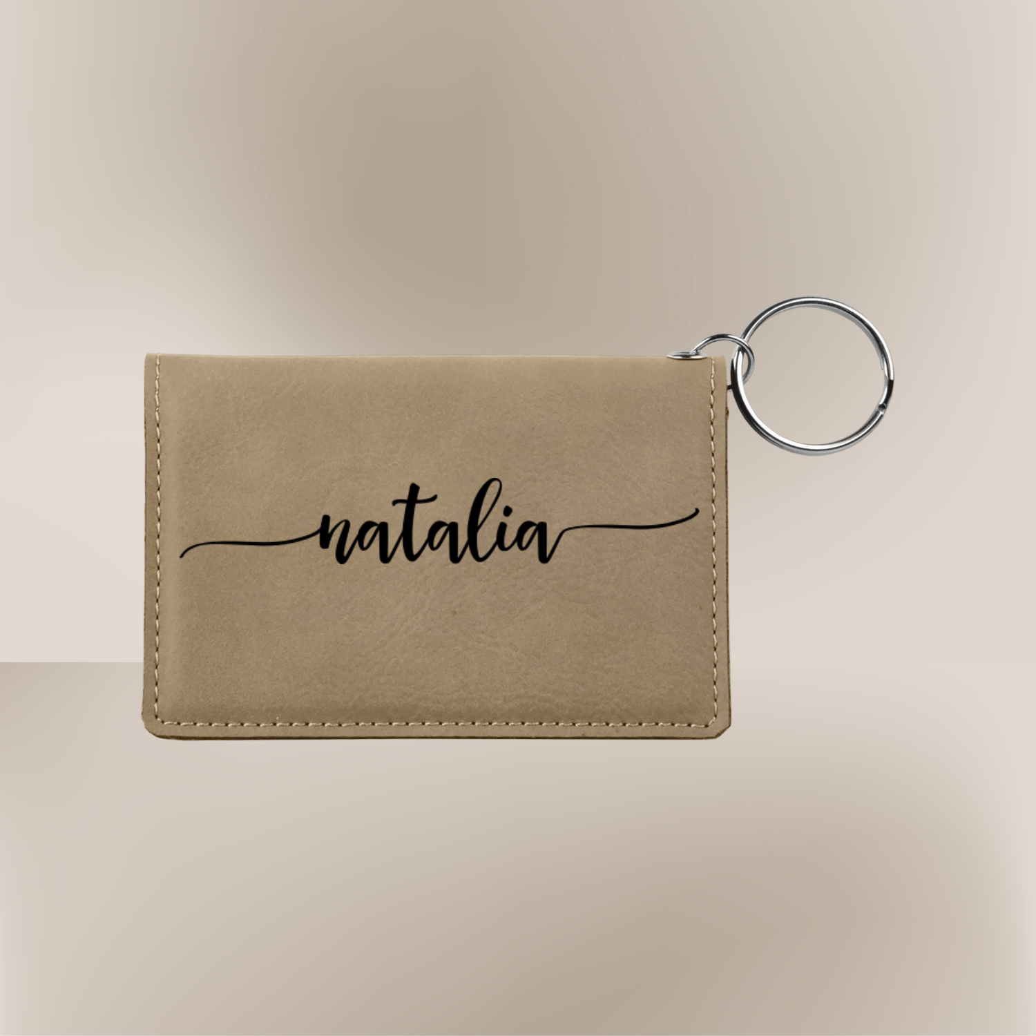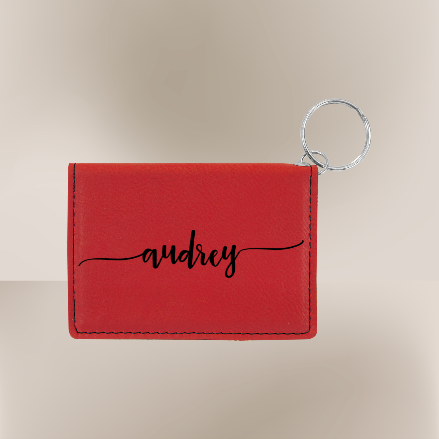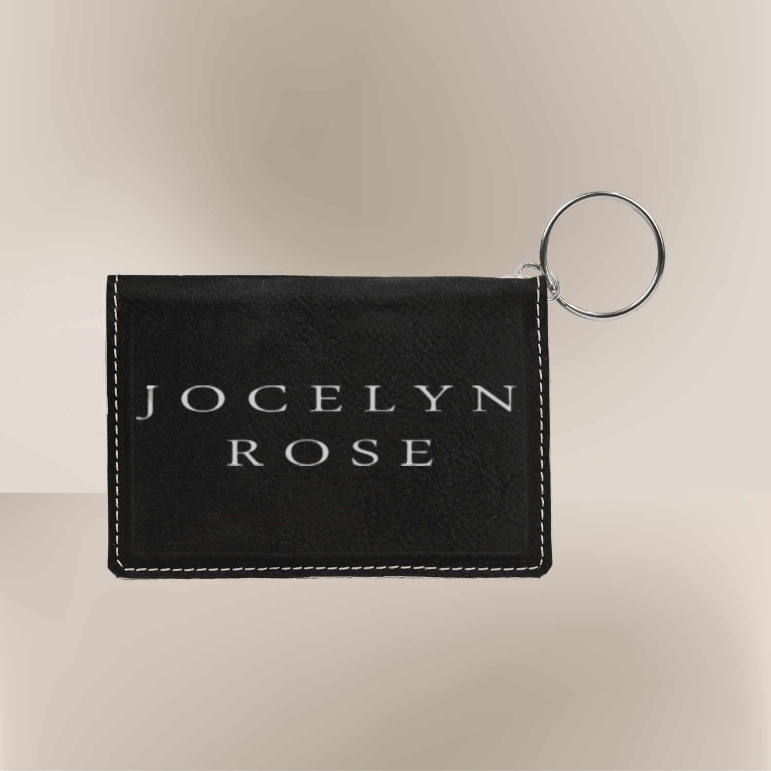 Vegan Leather Card Wallet: Made from premium vegan leather, this wallet is soft, durable, and designed for on-the-go convenience. With a secure snap closure and built-in keychain. Includes free personalization!