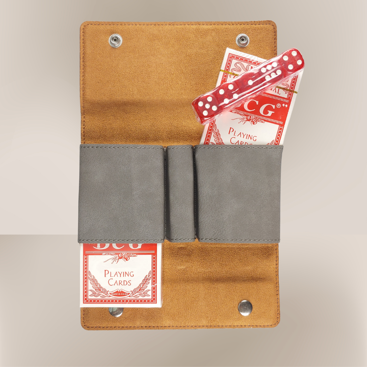 Vegan Leather Card & Dice Set: Whether you're playing poker, blackjack, or a fun round of dice games, this sleek and stylish case keeps everything neatly stored and ready to go.