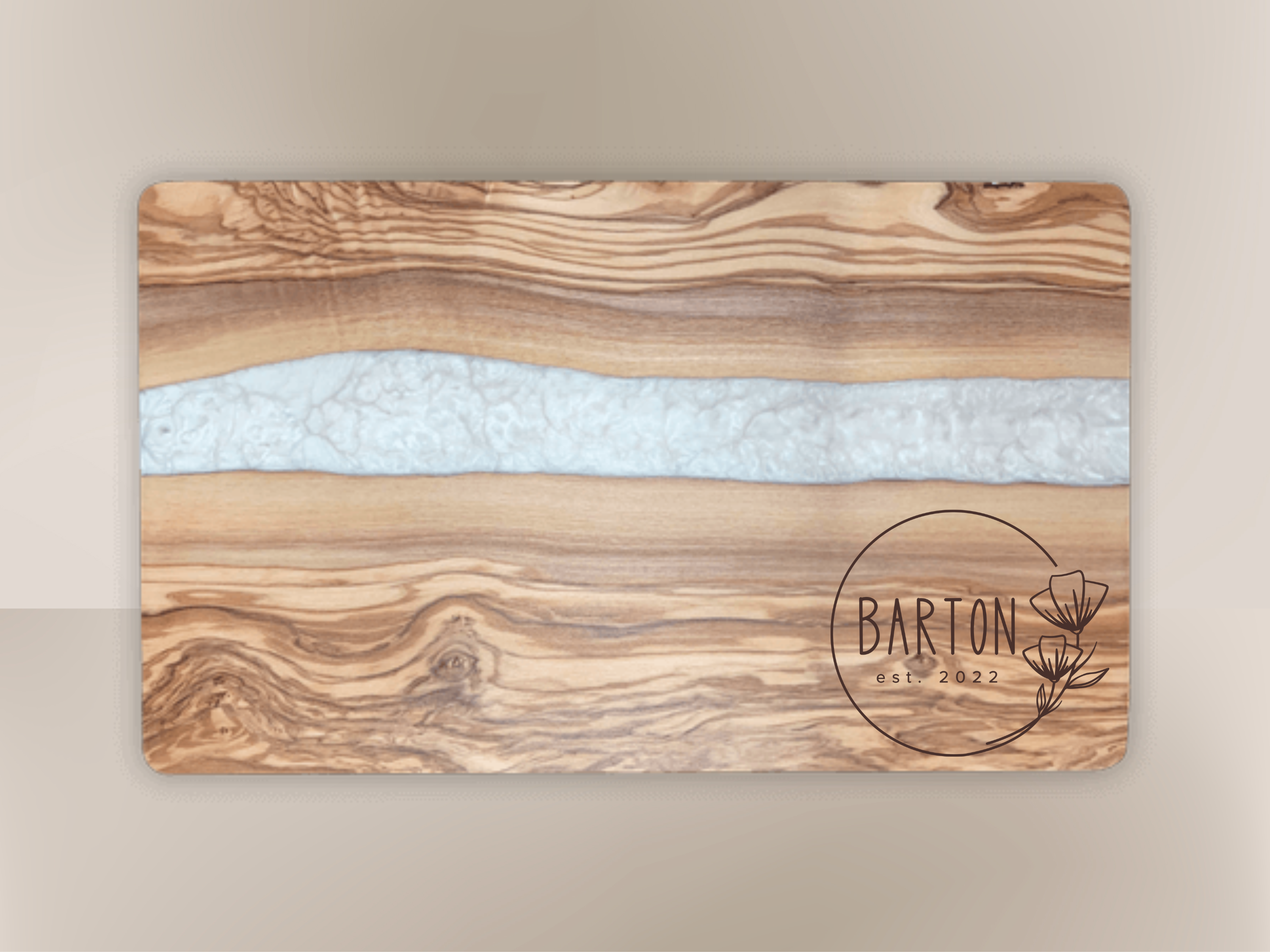 Where timeless natural beauty meets modern elegance. This olive wood serving board with white pearl resin inlay brings artistry to the table. Each piece is crafted from richly grained olive wood—renowned for its durability and distinctive patterns—paired with luminous resin for a sophisticated contrast.