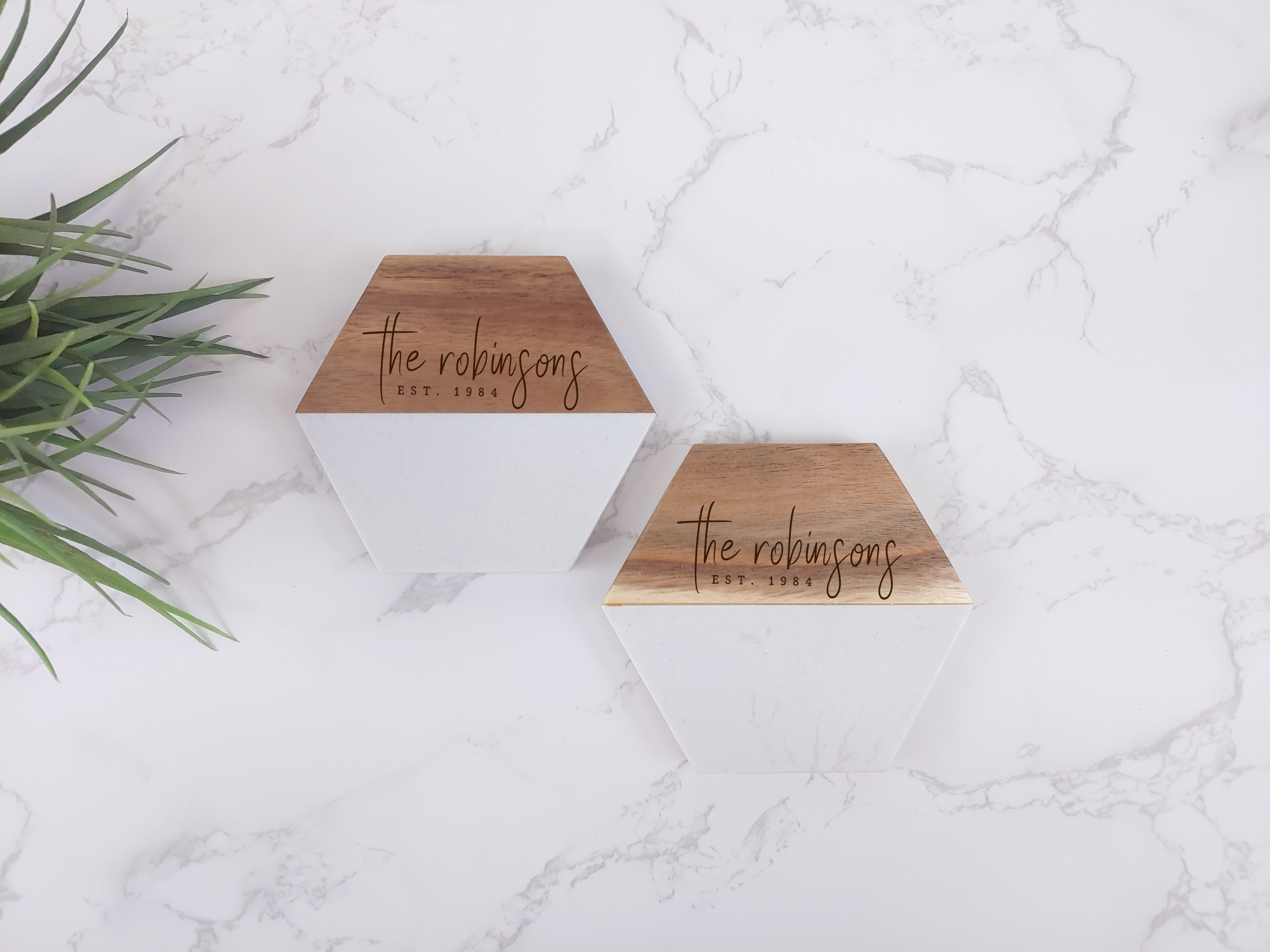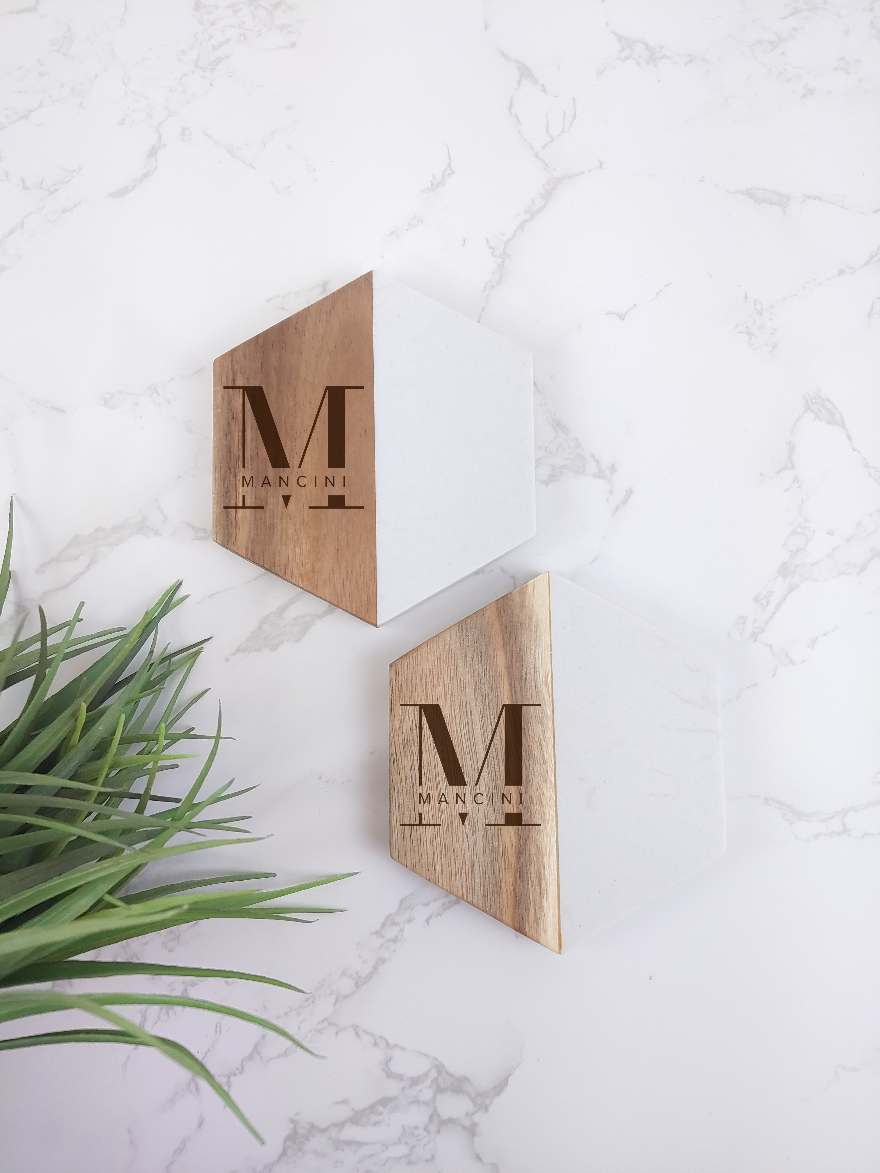 Personalized Marble & Wood Coaster Set