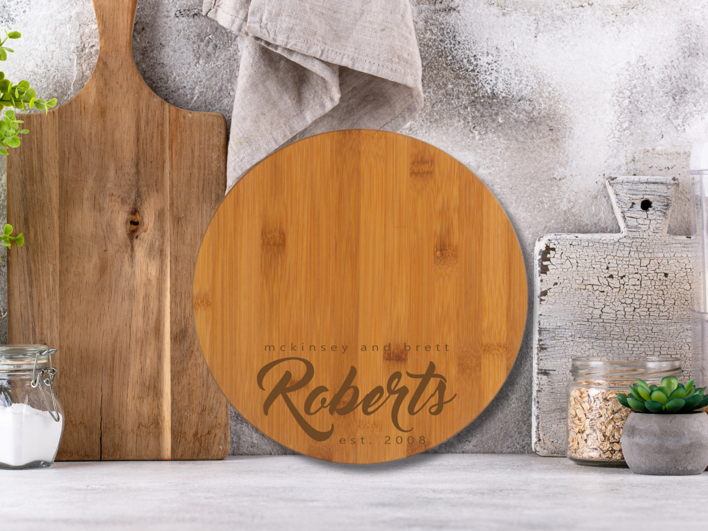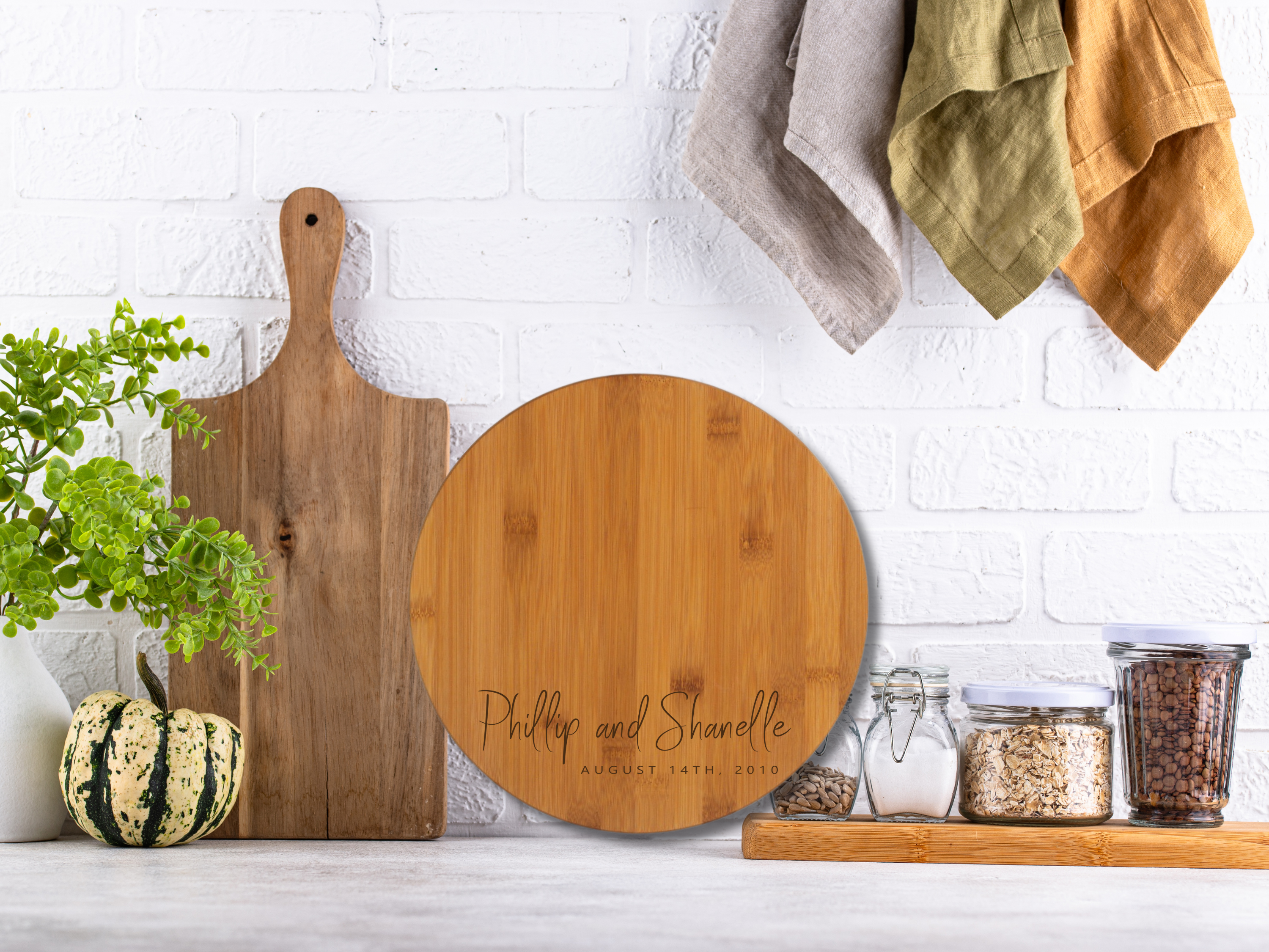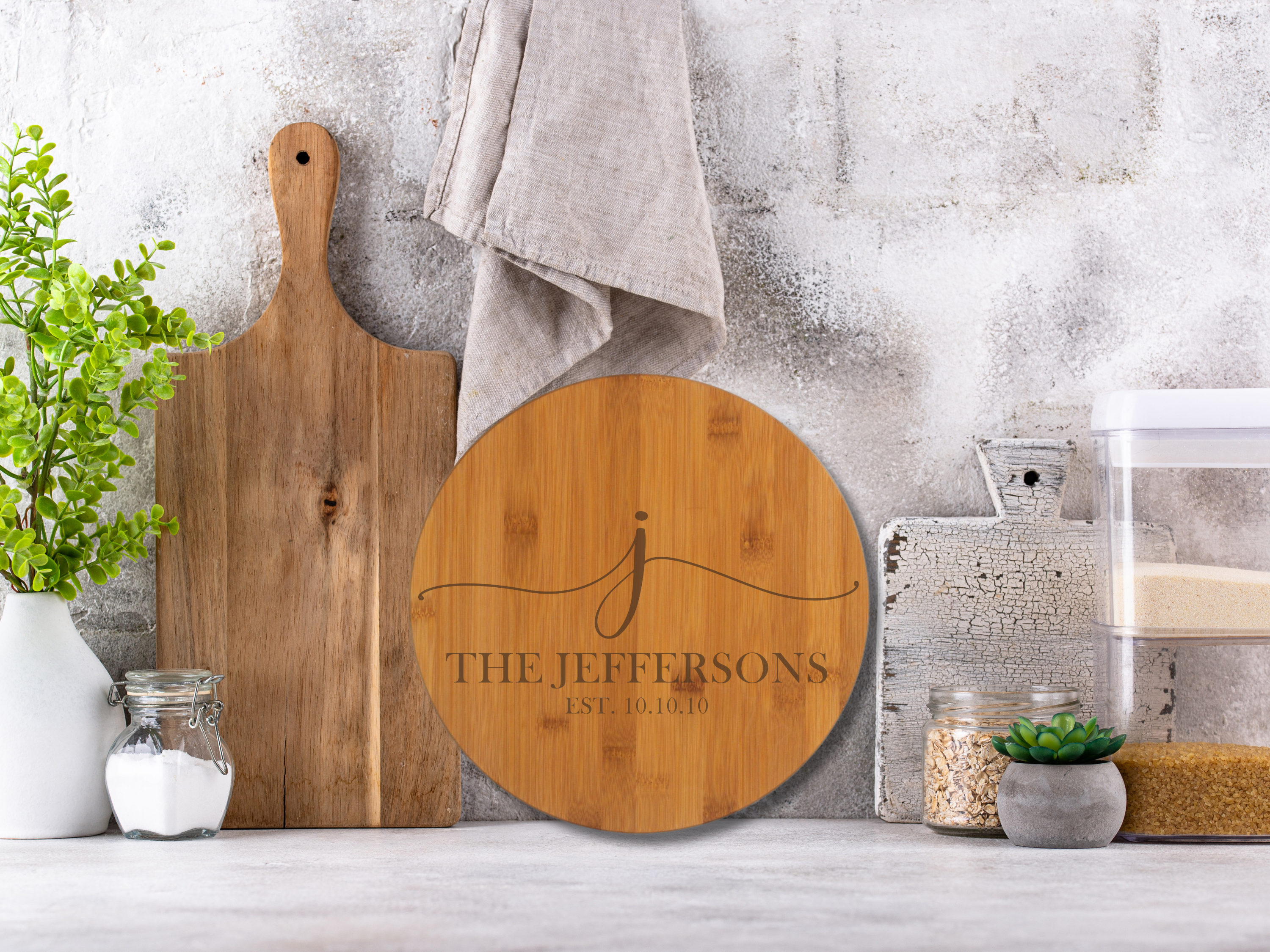 Each board is engraved with an initial, last name, and date to create a truly one-of-a-kind keepsake. The organically grown bamboo not only reflects natural beauty but also offers exceptional durability—naturally anti-microbial, moisture-resistant, and harder than most woods.